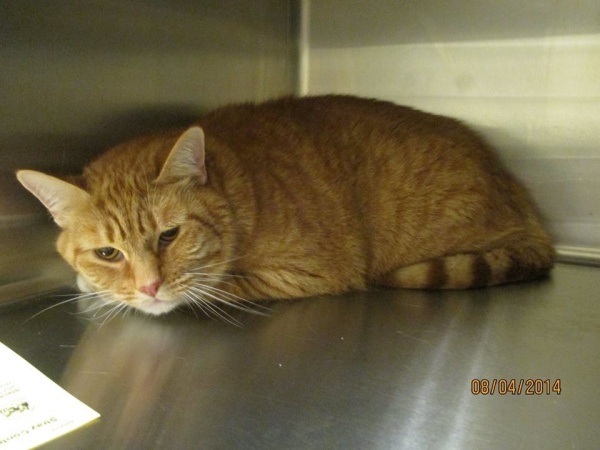 二年前,一隻橘色公貓突然出現在街頭遊蕩,後來牠決定在某戶人家的前院裡定居;然而大概一個多月後,這戶人家最終還是決定將牠送到收容所裡