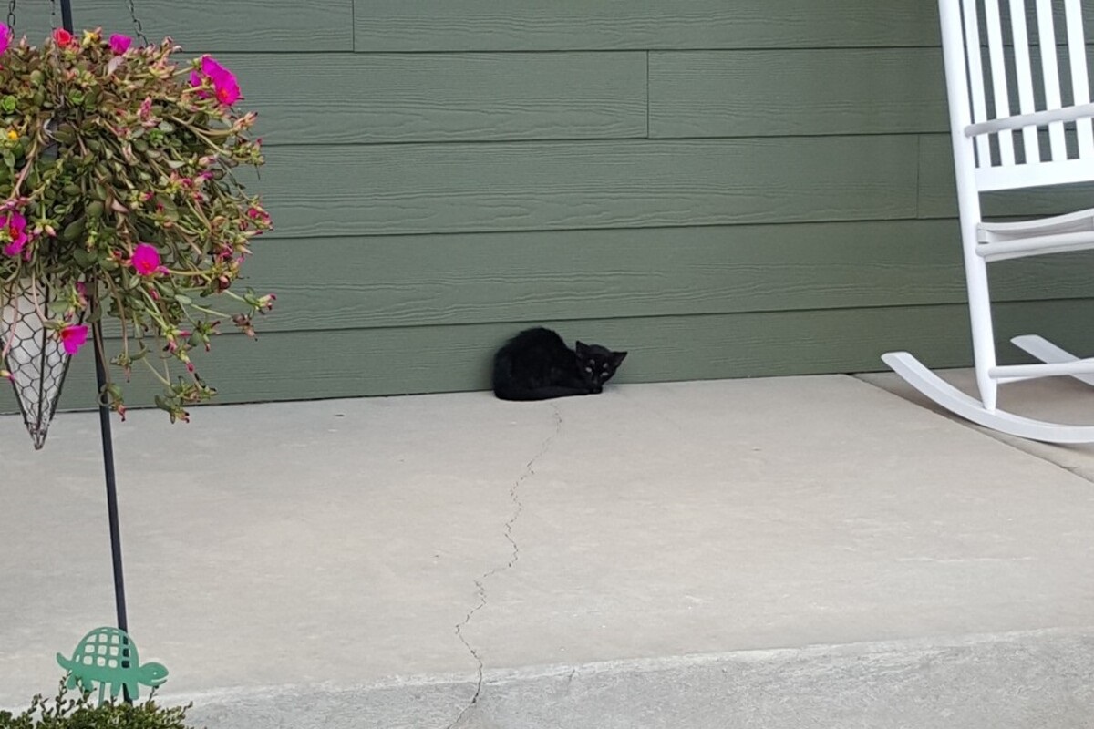 某天一隻瘦弱小黑貓突然出現在一對夫婦的門廊上,屋主夫妻見狀想趕緊將牠撈起,沒想到小貓咪因太害怕而逃脫了!