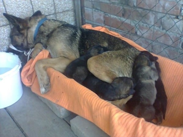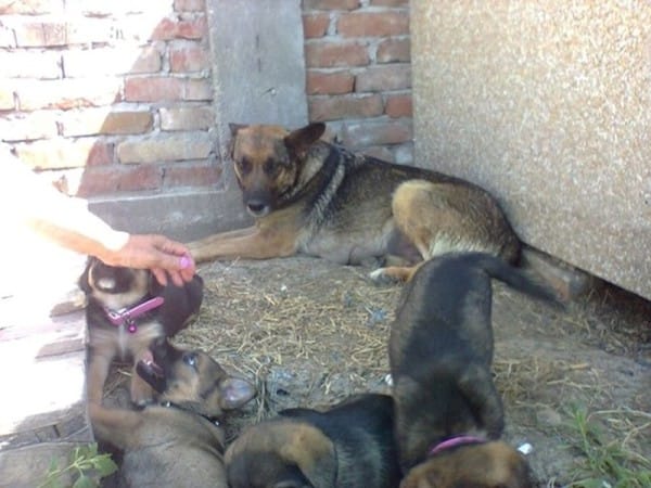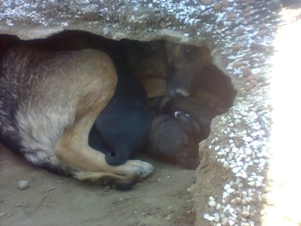 這個可憐的德國狼犬為了守護主人,再加上牠有四隻小狗狗要照顧,因此在主人墓下創建了一個窩,好讓四隻小狗有個安全的巢穴。動物保育員 Vesna 發現後,立即把狗狗們帶回家照顧。
