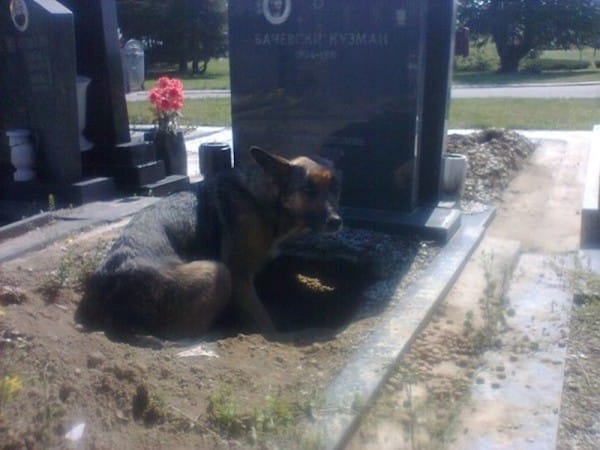 2015 年網路上流傳著一張令人心碎的照片,照片中是一隻累壞的德國狼犬坐在塞爾維亞的一座墓園裡的墳墓上。起初大家都以為這隻狗狗是為了好靠近待在主人身邊,即使主人已經不在了,但還是希望能守護在主人身旁,對牠來說主人在哪裡,那裏就是牠溫暖的家,儘管那個地方是冰冷的墓園。