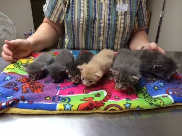 在此同時,有一隻貓媽媽也被送進來待產,牠平安地生下三隻小貓後,連同那三隻沒有媽媽的小貓也一起視為己出地照顧!偉大的母愛讓志工們都覺得好感人~