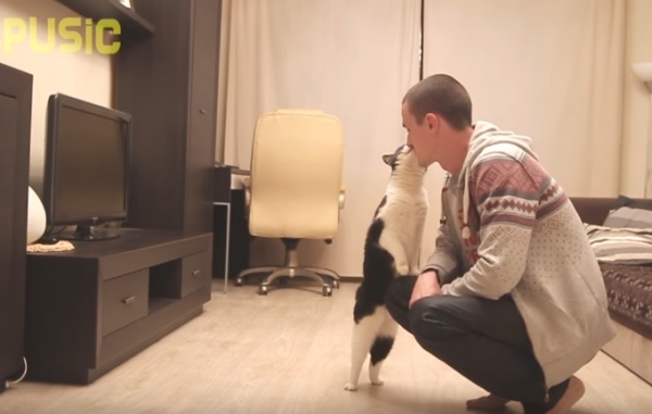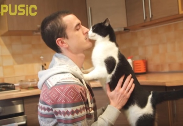 國外一隻黑白貓咪PUSIC和大家一般印象中冷靜自持的貓咪不太一樣,牠非常親人愛撒嬌,不但會討抱抱,還會不停地蹭蹭和親親,簡直比汪星人還黏人!
