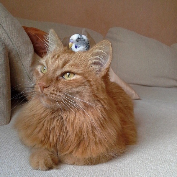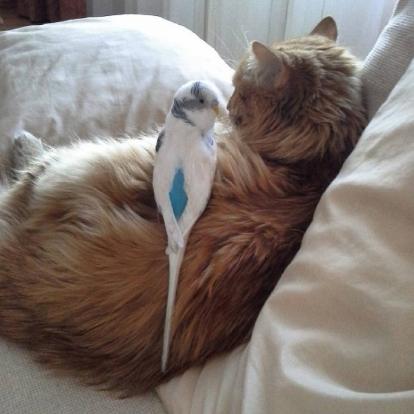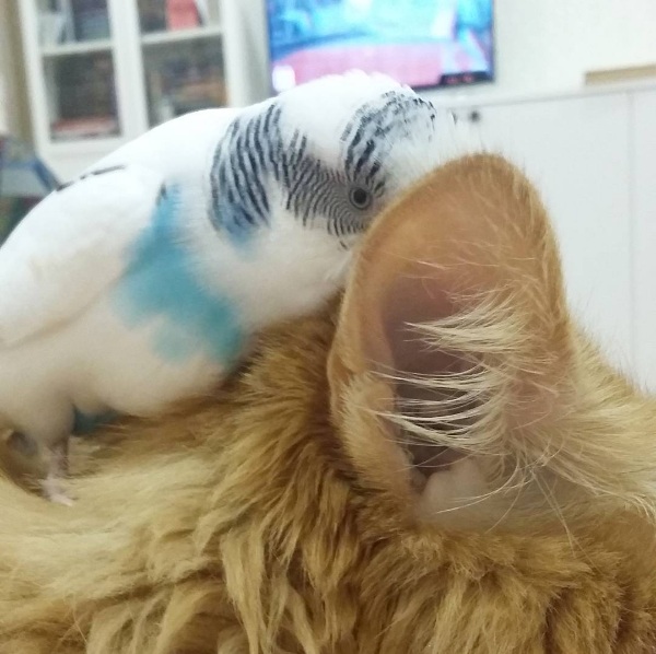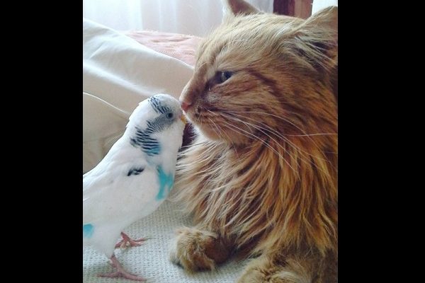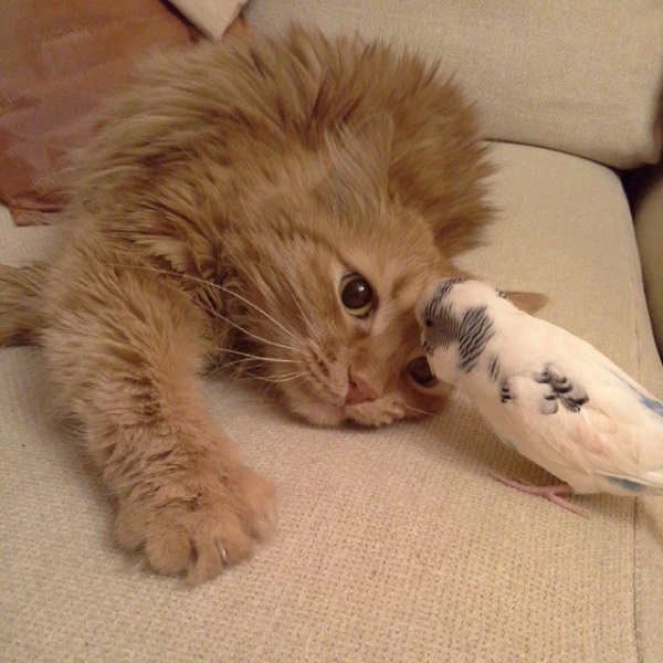 橘貓與鸚鵡變得好朋友!天啊~小編看到真的覺得超級驚訝的,貓咪竟然會放棄牠愛獵捕的天性,看到小鳥無動於衷!其實真的不是小編誇張了,小編就曾經聽朋友說自己養的白頭翁在公園被貓咪叼走的經驗,所以看到這個這麼美好的畫面,有點難以置信啊!