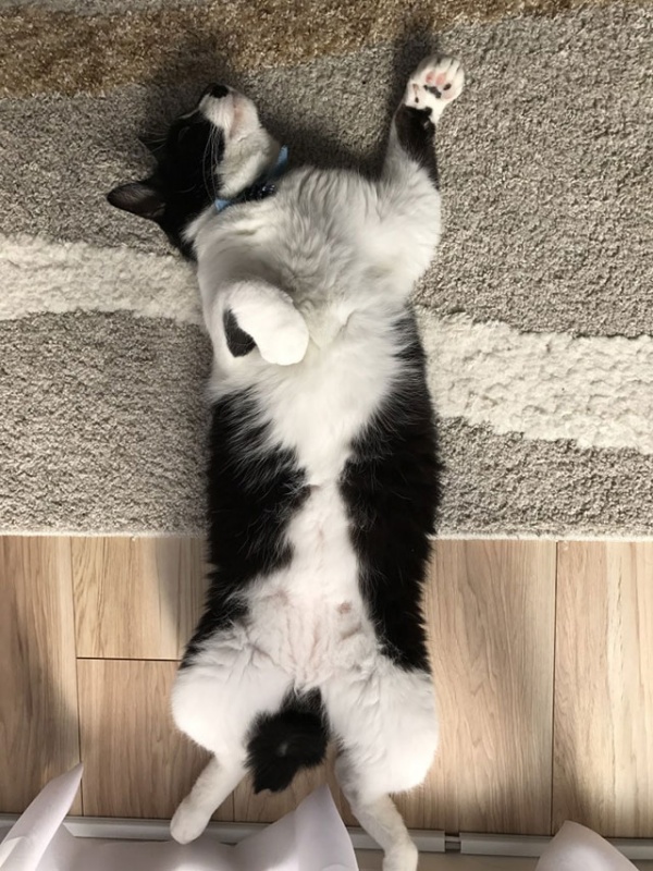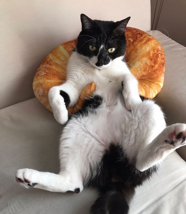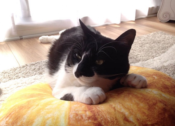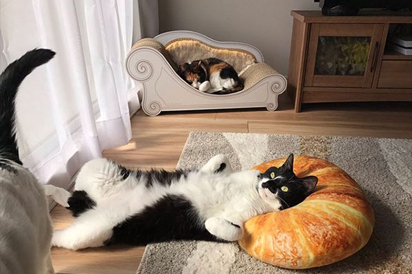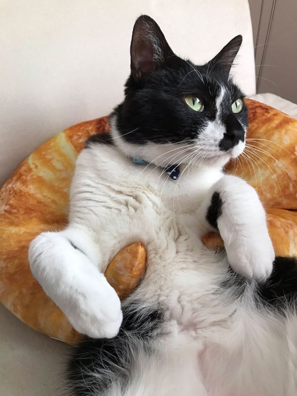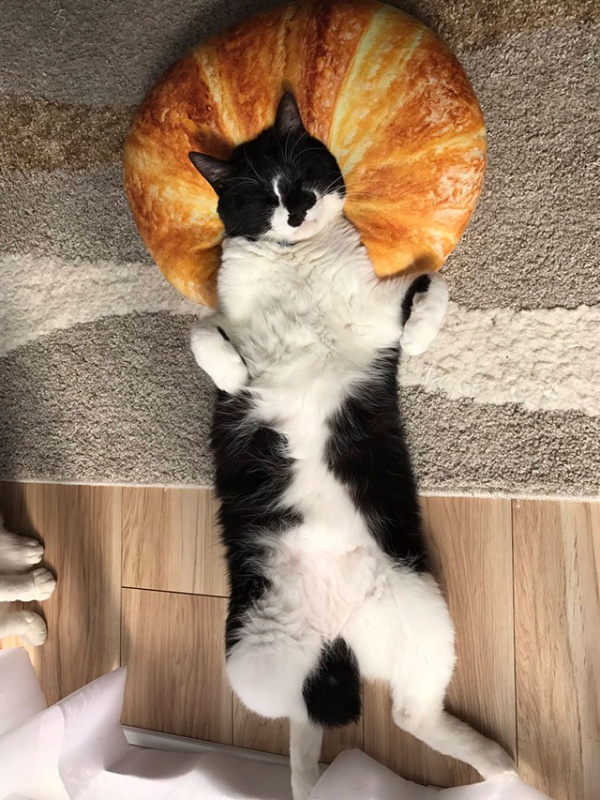 日本一位從事音樂相關工作的響介先生,與好幾隻貓咪住在一起!有天,他看到其中一隻喵Ryuku躺在地上,而且還露出痛苦的表情,決定出借之前在家具店買的牛角麵包靠墊給牠!