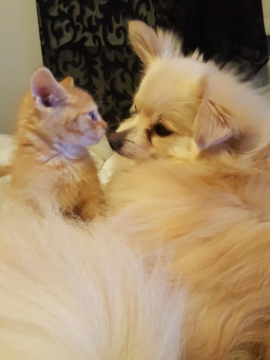 當貓咪Loki與博美犬Okami相遇的那一天,Okami就決定要讓Loki在牠的羽翼下成長!