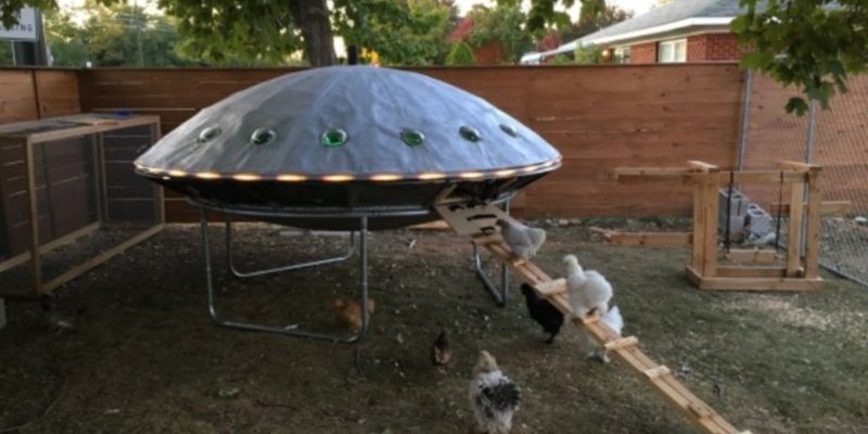 我們常開玩笑說貓咪是喵星人、狗狗是汪星人,而雞也常被稱做咕咕星人;一位住在美國愛達荷州的網友Brett W就巧手打造了飛碟造型的雞舍,外型非常逼真,甚至還會發亮!每次牠們要回雞舍時,就像要坐飛碟回咕咕星一樣,神秘感滿點啊!