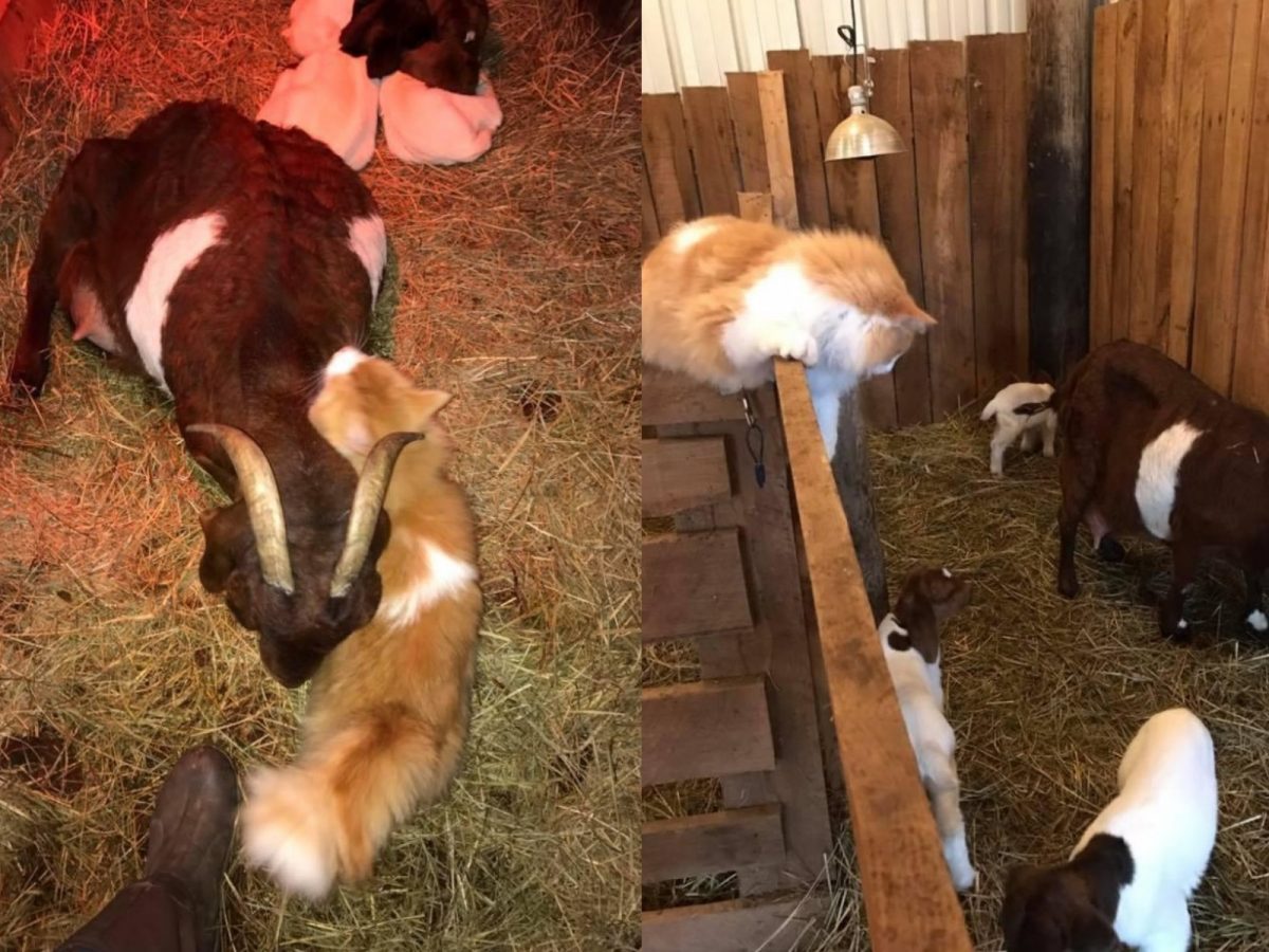 國外一隻橘白長毛貓「小帥哥」被一處農場收養,和農場裡的母羊寇柏意外成為好朋友。在寇柏生產時,小帥哥還全程陪同,還幫牠按摩安撫情緒,可說是暖男一枚!
