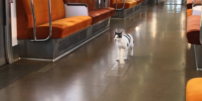 早朝の富山地鉄に乗っていたら、駅に住み着いている野良猫が間違えて電車に乗ってしまうほのぼのハプニングが起きました