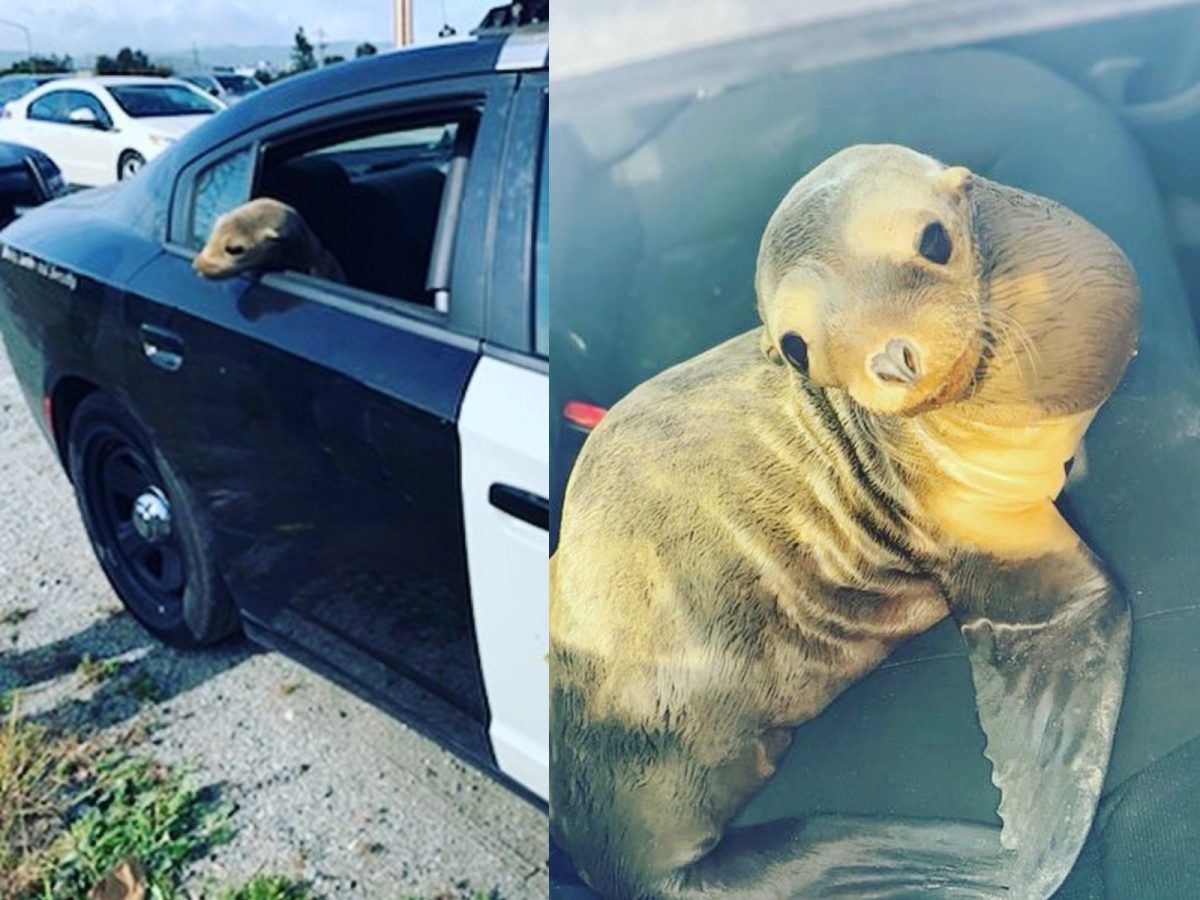 當Pereira打開警車的門,乖巧的海獅似乎知道要做什麼,自己跳上了後座,安安穩穩坐在上面。 (圖/Facebook@ CHP - San Francisco)