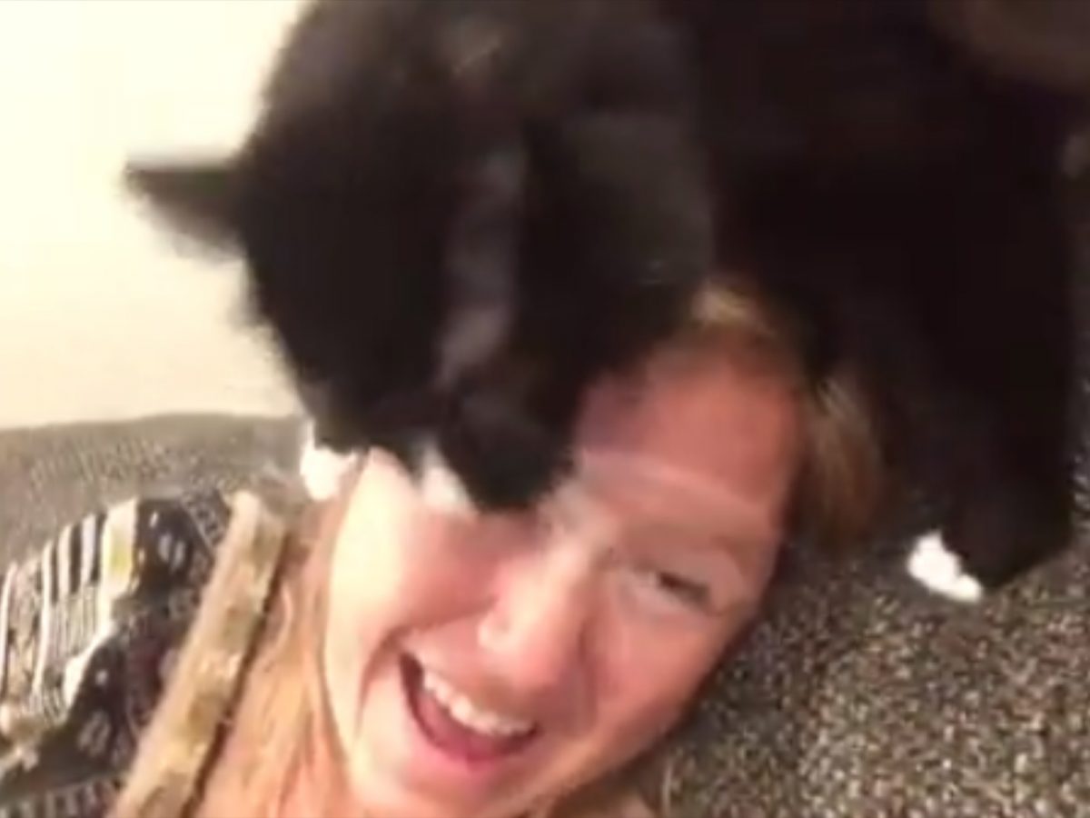 貓奴莉茲總是喜歡在家裡高歌一曲,但是她的黑白貓海倫似乎不買帳。愛唱歌的莉茲在她的IG上分享許多自己唱歌的影片,但每一次都沒有好好唱完,因為海倫實在是無法忍受莉茲的歌聲,每次聽到都會衝過來抱住莉茲的臉,要她不要再唱啦!