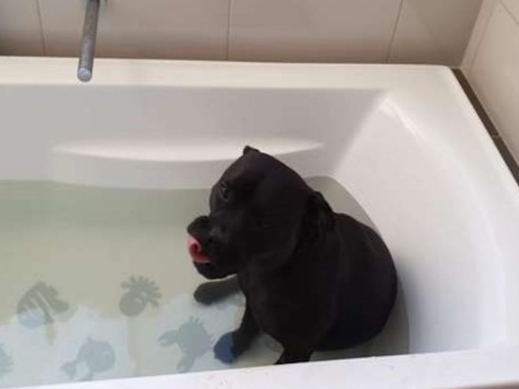 還會一起搞破壞……(圖/IG@aeida.thestaffy) 馬麻妮可Nicole Ackehurst表示,黑色比特犬Aeida是一隻活潑友善又充滿愛的狗狗,牠非常喜歡鄰居家的小孩以及狗狗Cashew,兩隻汪星人認識後很快就成為超級好朋友,白天喜歡玩在一起,但是到了回家時間總是依依不捨,因此妮可與鄰居商量後,就在兩家人的庭院圍牆上加裝一扇狗門,讓牠們可以隨時自由進出。而就在幾個星期前,妮可突然發現Aeida經常在晚上某個時間消失不見,牠既不在家中也不在鄰居家院子,正當她非常疑惑牠的去向時,她收到隔壁鄰居傳來的照片,竟然是她的愛犬坐在鄰居家的浴缸裡準備要和小朋友一起洗澎澎!