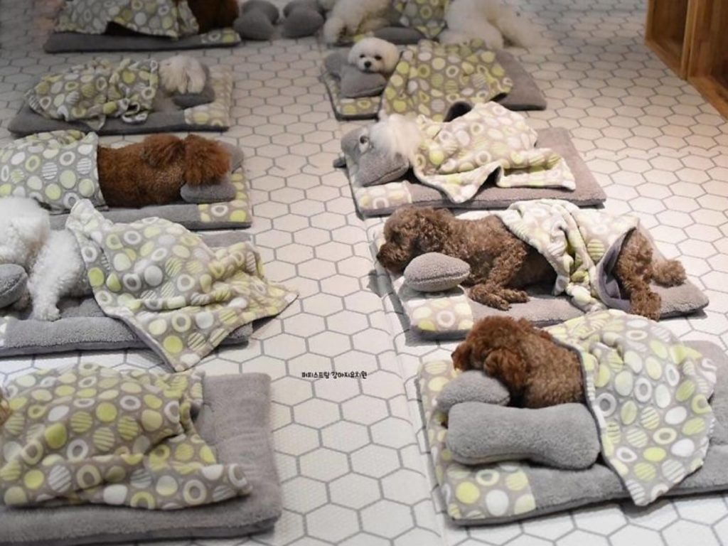 現代人熱愛寵物,狗狗貓貓都各有愛好者,許多民眾把寵物看得跟自己親生小孩一樣重要,因此小孩有的「毛小孩」也都要有,像是狗狗托兒中心就在韓國逐漸流行起來。上班族白天必須出外上班,不放心或不忍心把狗狗獨自留在家,便可以送去托兒中心集中照顧啦。許多汪星人一字排開睡午覺的畫面,更讓網友高呼實在太萌了!