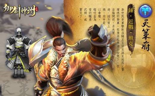 近戰、坦克類型的門派,使用武器為錘。驍勇善戰、威震天下的天策府,有先天的體格優勢與顯赫戰績,並被賦予不凡的身分地位,可說是人人稱羨的職位喔!