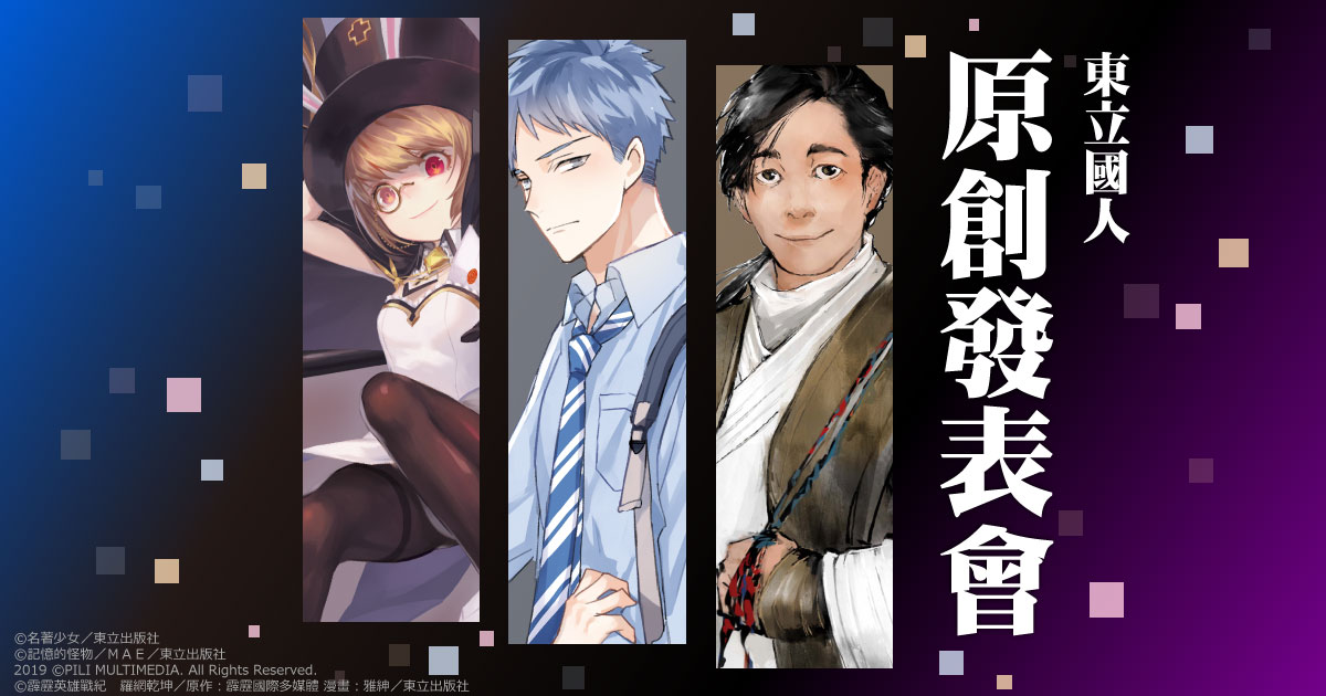繼日本漫畫家、原創BL小說作者與繪師的堅強陣容之後,2020年第8屆台北國際動漫節東立出版社的最後一則重大活動訊息終於解禁!即將於2月2日舉辦的「東立國人原創發表會」,將規劃三大主題,並以原創IP《名著少女》、原創漫畫《記憶的怪物》與改編漫畫《霹靂英雄戰紀》為中心宣布重大消息。