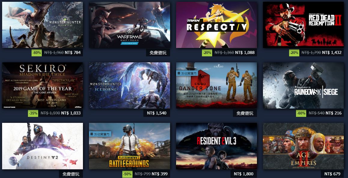 記者顏大惟/綜合報導 我是廣告 請繼續往下閱讀 ×今(20)日開始,Steam正式開啟2019年的冬季特賣,許多遊戲紛紛迎來了歷史最低價,包括最近才剛登上PC平台的《碧血狂殺2》、《魔物獵人:世界》、《隻狼》等等。×此外,Steam也針對本次的冬季特價開啟了新的「Steam谷活動」,只要消費10元就可以換取33代幣,也可以完成相關任務賺取代幣。代幣除了可以購買折扣券之外,也能買各種新的聊天貼紙、個人檔案以及聊天室效果。× ×詳細特價遊戲與價格,玩家可至Steam上觀看。 相關新聞 《決勝時刻:現代戰爭》突破遊戲主機遊玩次數 成史上最多人玩的《決勝時刻》系列作人物訪談/直擊《三國志14》製作人!最意外能和《銀河英雄傳說》合作《天堂R》首次大改版!同步韓永久免費制!最強 BOSS「闇龍」即將來襲 steam冬季特賣碧血狂殺隻狼魔物獵人