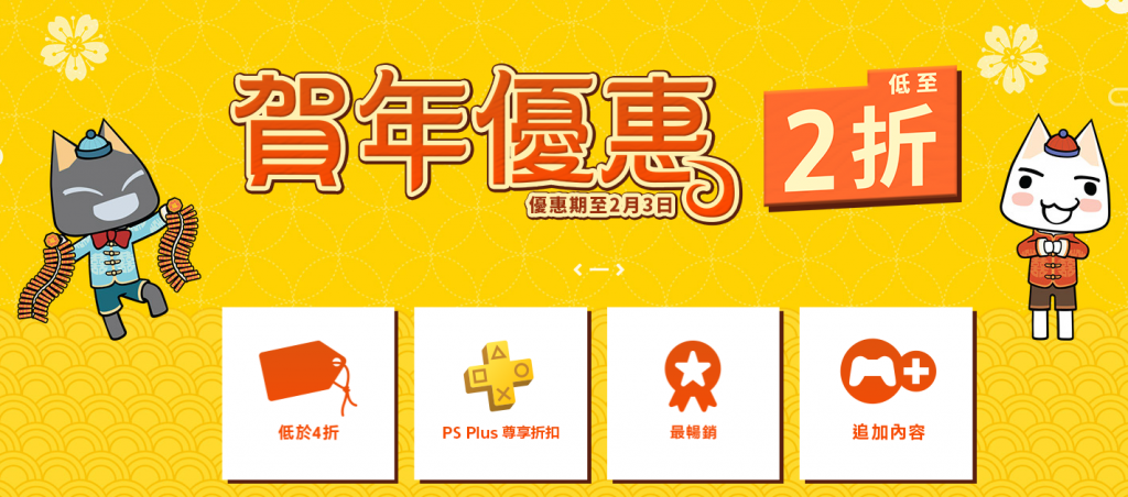 記者陸冠文 / 綜合報導 我是廣告 請繼續往下閱讀 ×新年春節來臨,也是 PS4 打折的時刻,PSN 商店自 1 月 21 日至 2 月 3 日將推出新年特賣,不僅多部強作享有優惠折扣,PS Plus 會員也有優惠價格。×《死亡擱淺》《現代戰爭》《萊沙的鍊金工坊》《碧血狂殺2》等作品都享有優惠價格,近期推出的《人中之龍 3、4、5 珍藏版》也有 64% 折扣。 相關新聞 《決勝時刻M》Garena 區域邀請賽登場 台港澳代表隊將登上世界舞台爭奪冠軍寶座《天堂M》攜手beanfun! 兩千萬零用金大方送頑皮狗為《最後生還者2》招募熟知NVIDIA工程師 有望登上PC平台? ps4死亡擱淺現代戰爭碧血狂殺2
