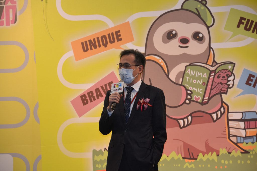 中華動漫出版同業協進會理事長黃詠雪。 長期支持動漫產業的立法委員鄭運鵬和新科立委賴品妤也親臨現場。鄭運鵬笑說,自己支持動漫界已經長達數十年時間,是時候該交棒給年輕的賴品妤。同時鄭運鵬更當場秀出上頭有自己手寫「滅」字的口罩,不僅追上當紅動漫《鬼滅之刃》的潮流,更象徵著「滅去肺炎」,希望來場的粉絲都健健康康。