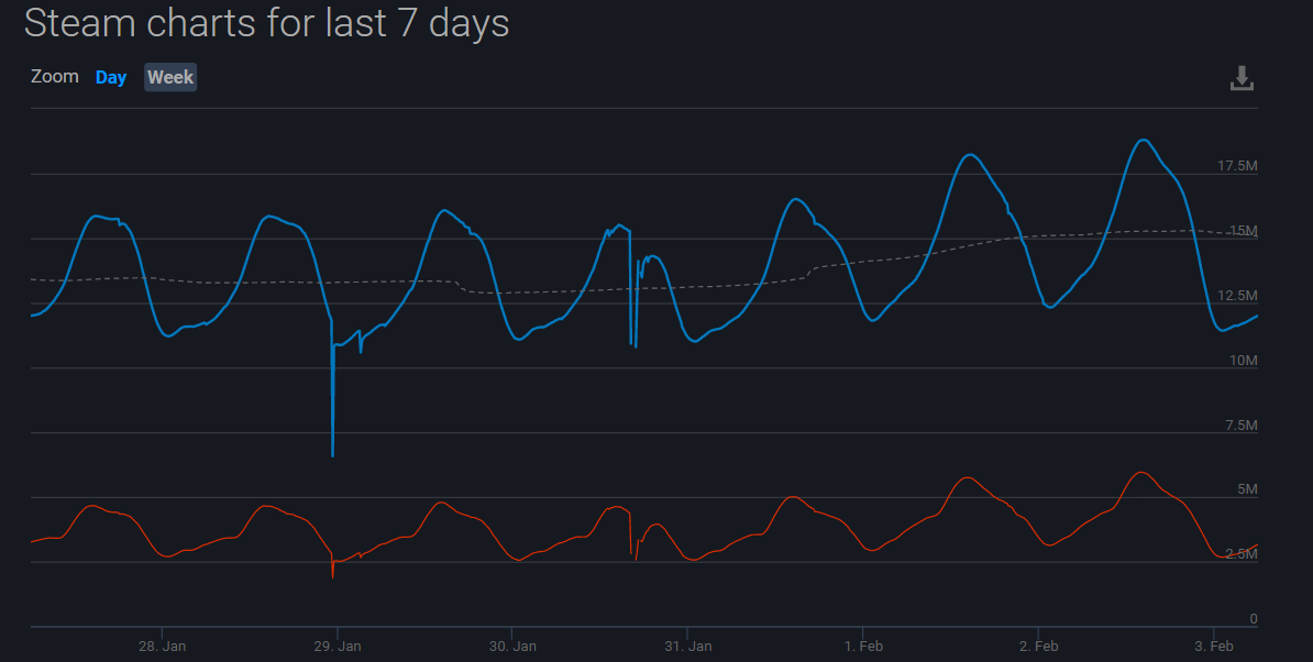 But there's about 1 million less players actually in-game (≈5.8mil vs ≈7mil two years ago).https://t.co/D6WDHbz0B4