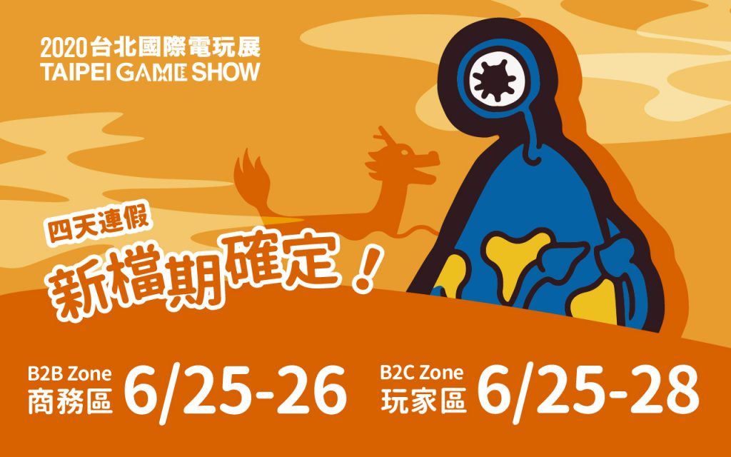 2020台北國際電玩展確定延期至六月於台北南港展覽館1館舉辦,玩家區展出時間為6月25日至28日共四天,商務區時間為6月25日至26日亦與亞太遊戲高峰會同步舉行。主辦單位針對已購買台北電玩展玩家區之預購票,可於新展期延續使用,若退票亦可受理,各通路退票規定也同步公告於官方網站,退票截止日為2020年6月28日;此外,一日參觀券亦於新展期使用,不受任何影響;新檔期之預購票銷售辦法,將另行公告。