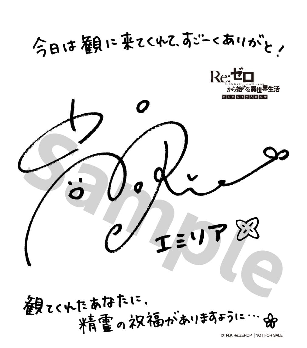 木棉花表示,2/27起「木棉花購物網」等多個網站將同步開賣!雙人套票550元,送日本同款「角色珍藏複製簽名版」一款(共5款,款式隨機贈送),此角色簽名版相較於一般款式,雙面獨特設計,正面為電影版限定角色圖,背面為各聲優「愛蜜莉雅:高橋李依」、「雷姆:水瀬いのり」、「拉姆:村川梨衣」、「菜月昴:小林裕介」、「碧翠絲:新井里美」給粉絲們的留言。特典數量有限,喜愛從零的粉絲們千萬不要錯過這難得的機會。