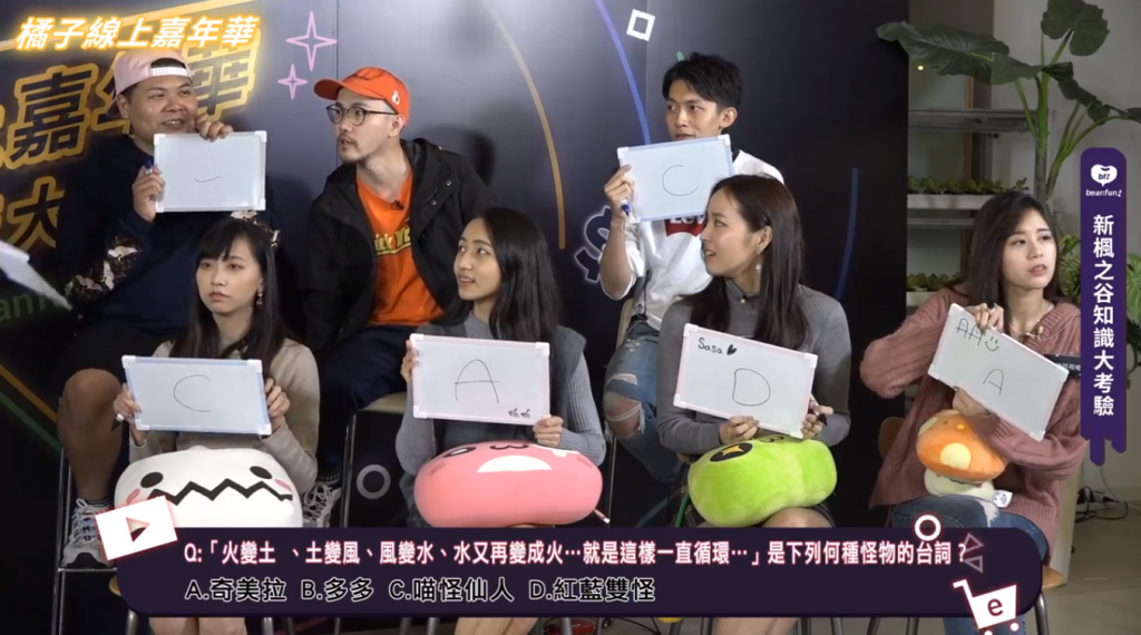 其中《新楓之谷》邀請影音創作網紅「頑GAME」成員鐵牛與華森一同遊玩有趣的「知識大考驗」與「忍耐任務」。知識大考驗將由兩邊的隊伍進行對決,考題相當考驗對楓之谷的了解,比賽過程相當有趣,歡笑聲不斷,不過更重要的是,遊戲橘子相當大方的讓觀眾預測獲勝的隊伍,預測成功者可獲得 100 點樂豆點數。
