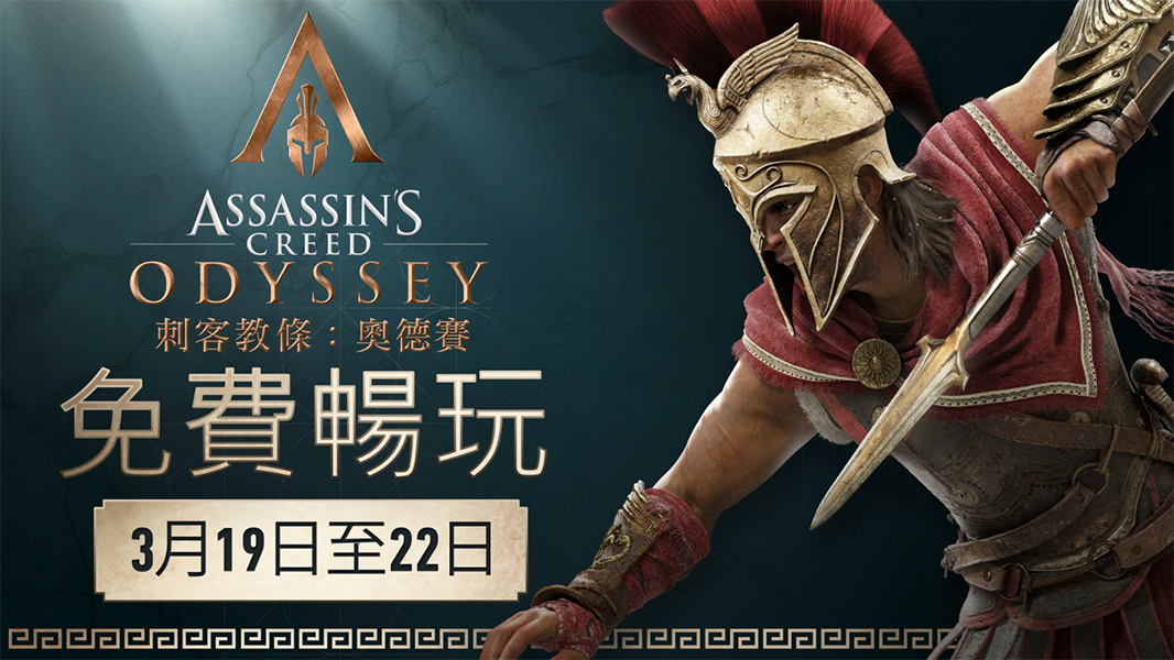 (圖 / 翻攝自 Ubisoft) 《刺客教條:奧德賽》將於 3 月 19 日至 3 月 22 日開放免費遊玩版。