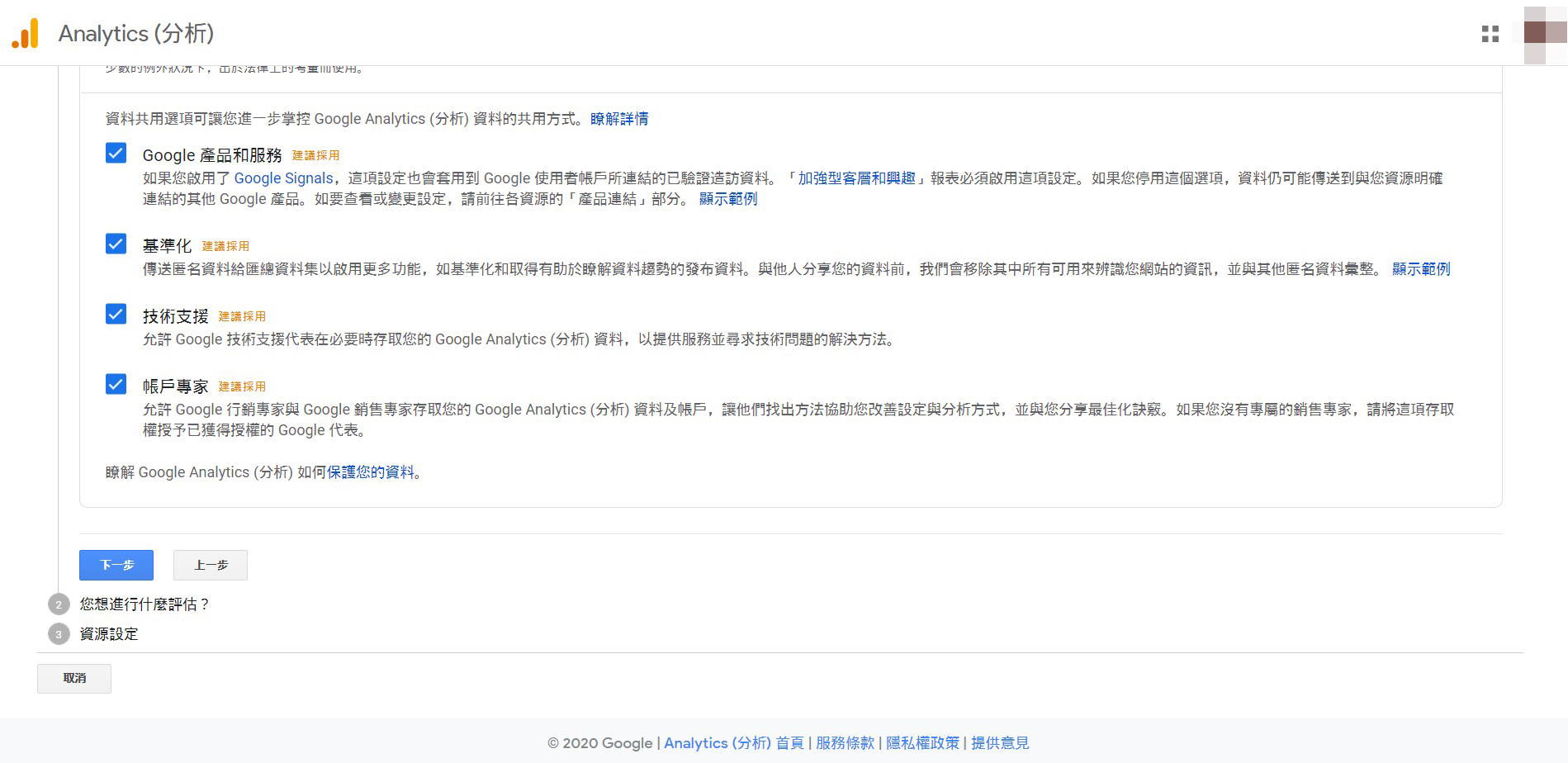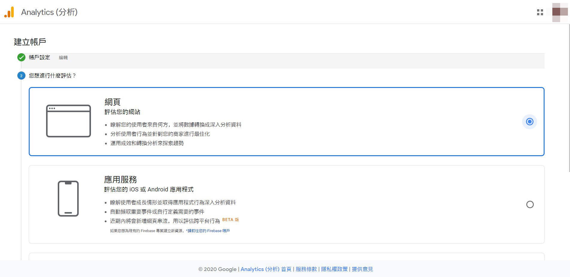 5.接下來GoogleAnalytics會詢問您分析想要怎樣的用途,這個可以依照個人需