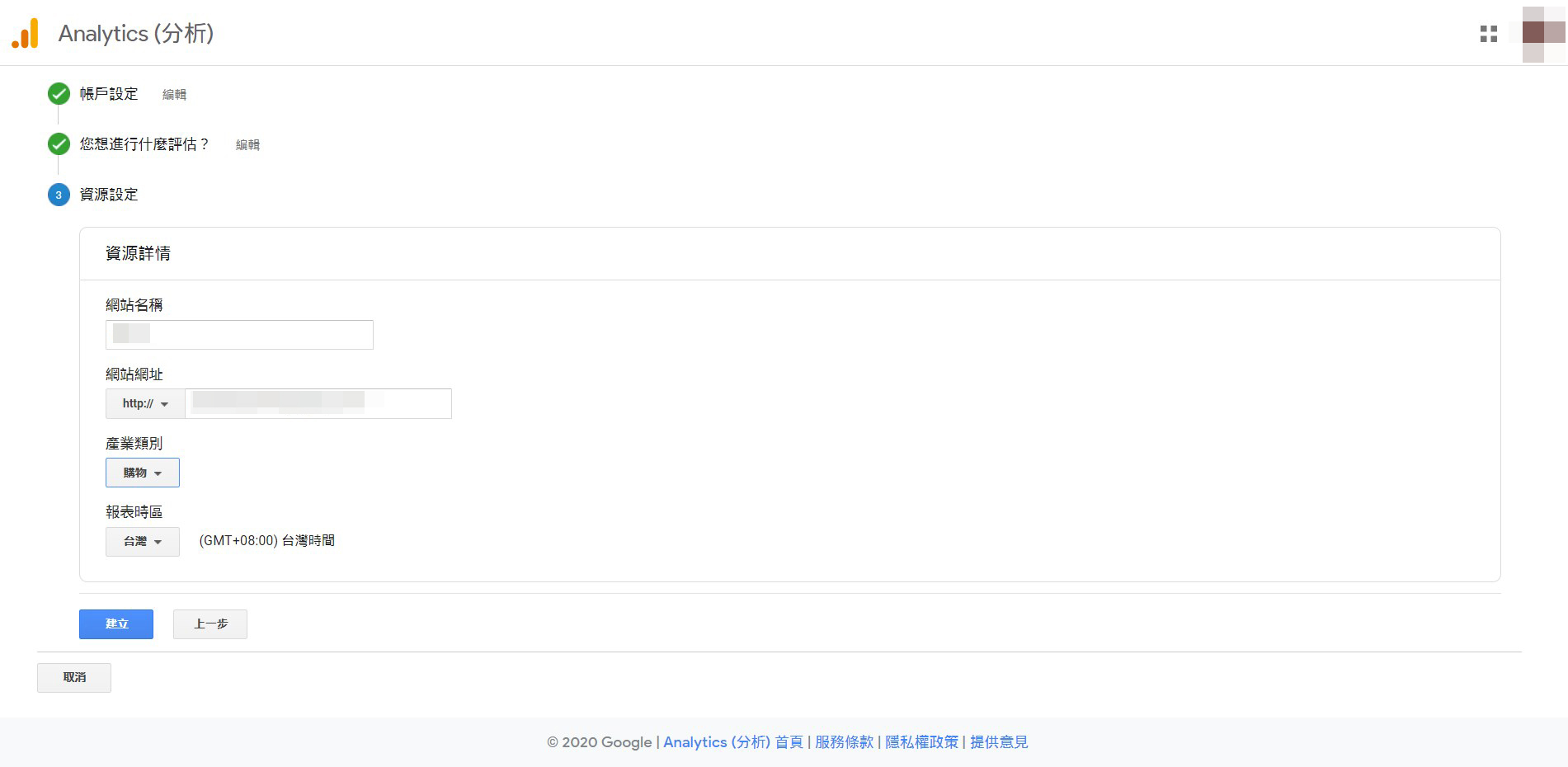 4.建立帳戶>填寫【帳戶名稱】(一個帳號可以管理多個網站,建議填寫網站名