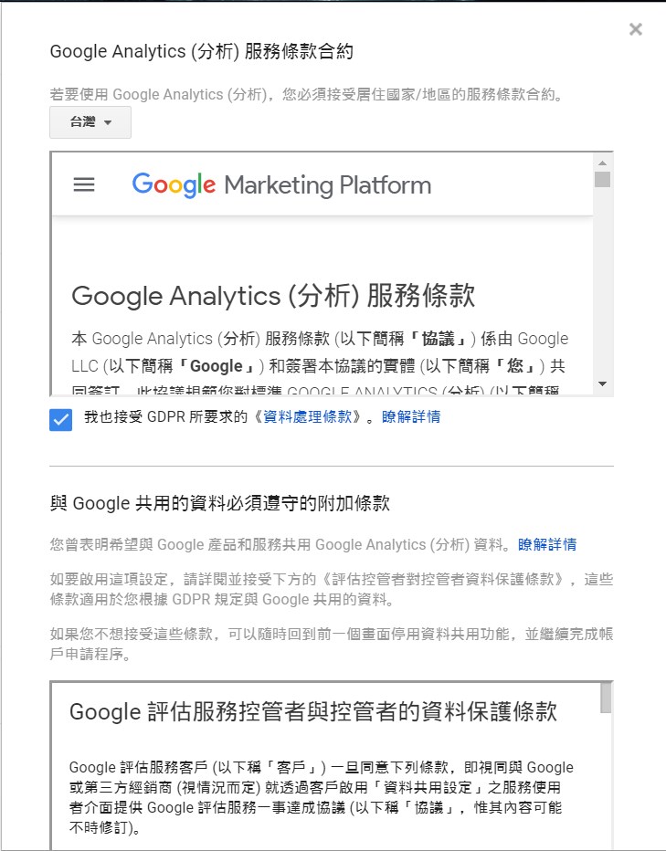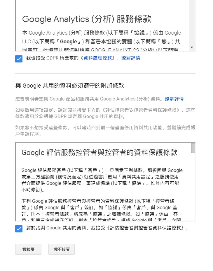 7.GoogleAnalytics(分析)服務條款合約>>按【我接受】