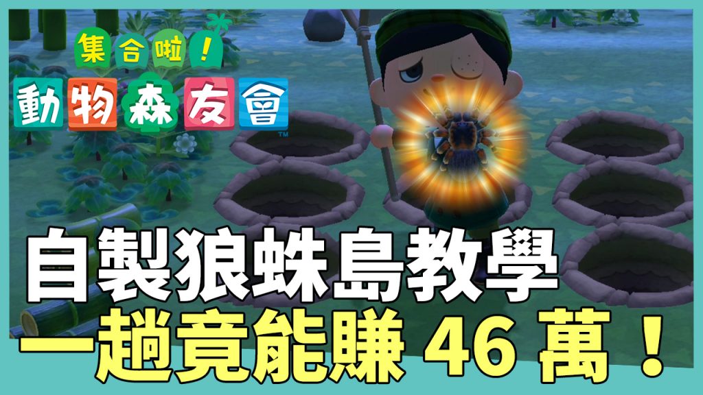 在《集合啦!動物森友會》中有許多賺錢的方法,玩家的偏好也各有不同,有些玩家偏好捕魚,有些玩家偏好抓昆蟲,但如果論「最快速」的賺錢方法就不得不提到狼蛛以及自製狼蛛島。