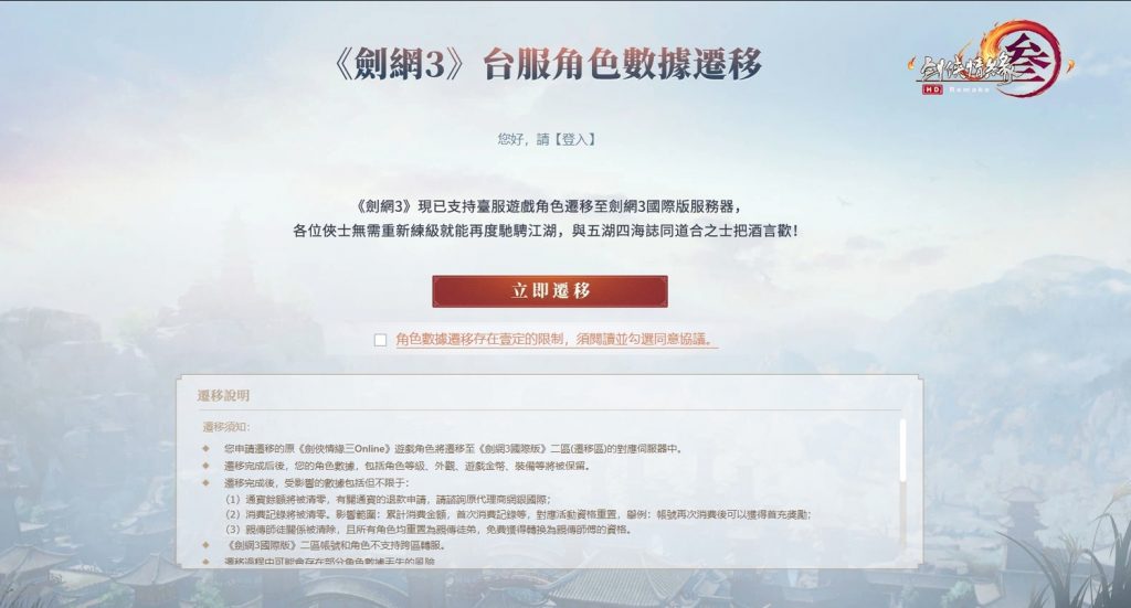 西山居要求轉移數據玩家不得有敏感言論出現,否則封禁帳戶。 圖:翻攝自官網 在終於擺脫網銀國際後,西山居遊戲昨日由其香港子公司Xoyobox宣布,將在11日重新推出《劍網3國際版》,國際服不互通其他版本伺服器,接受包含台服在內的帳號數據轉移。在開服公告中,西山居特別公告表示:「嚴禁在遊戲及相關輔助工具內發表【任何】涉及政治、宗教、種族、民族等敏感問題的言論」,違者將封禁該帳號。不過由於《劍網3國際版》並未像中國服一般要求遊戲實名制,僅需使用電子郵件就可以註冊使用,因此即使尚未開服也已經可以預見未來的罵戰。