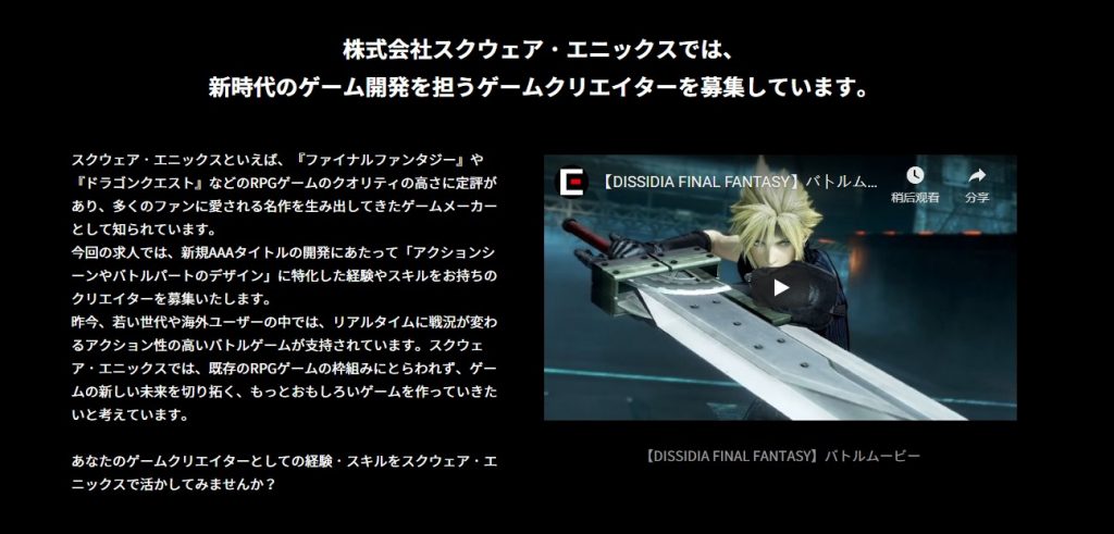 早在去年11月的一份招聘資訊中,SE就表示正在打造一個未公佈的次時代動作遊戲。當時的招聘資訊顯示,該作品的員工將致力於打造一款「超越現有動作遊戲框架的次時代動作遊戲體驗」。聽起來跟這次的3A動作新遊很像,但是否是同一作品尚未知曉。
