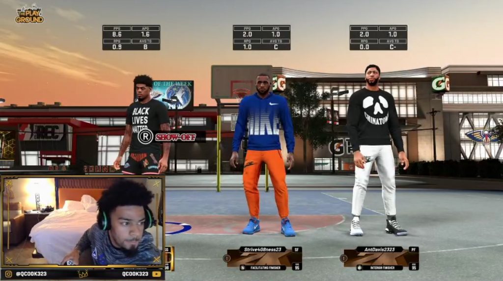 好不容易開打後,Anthony Davis很明顯是三人中遊戲實力比較弱的,連如何接空接灌籃都搞不清楚;Quinn Cook與LeBron James倒是策動了幾次底線發球長傳灌籃得分,不過三人的第一場遊戲還是在前面輸太多、自己角色又沒有徽章的情況下落敗。但三人也沒辦法進行第二場遊戲了,因為遊戲在第二場遊戲載入時慘遭崩潰,最終在問題難以修復下三人只能先行解散。