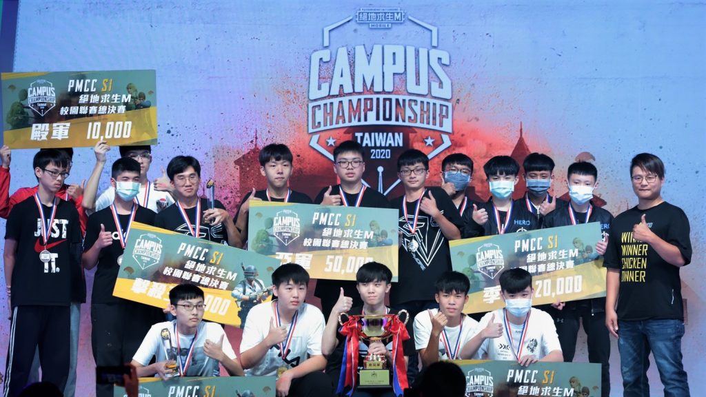 由熱酷科技主辦,教育部體育署與中華民國電子競技運動協會指導,台灣電競(TESL)所執行的《PUBG MOBILE》校園聯賽(PUBG MOBILE Campus Championship,PMCC)今(25)日迎來總決賽,16 支校園吃雞精英隊伍於松山文創園區「2020臺灣運動產業博覽會」電競及多功能館齊聚一堂,最終由吃了三把雞的「立志猩勢力」奪下冠軍。
