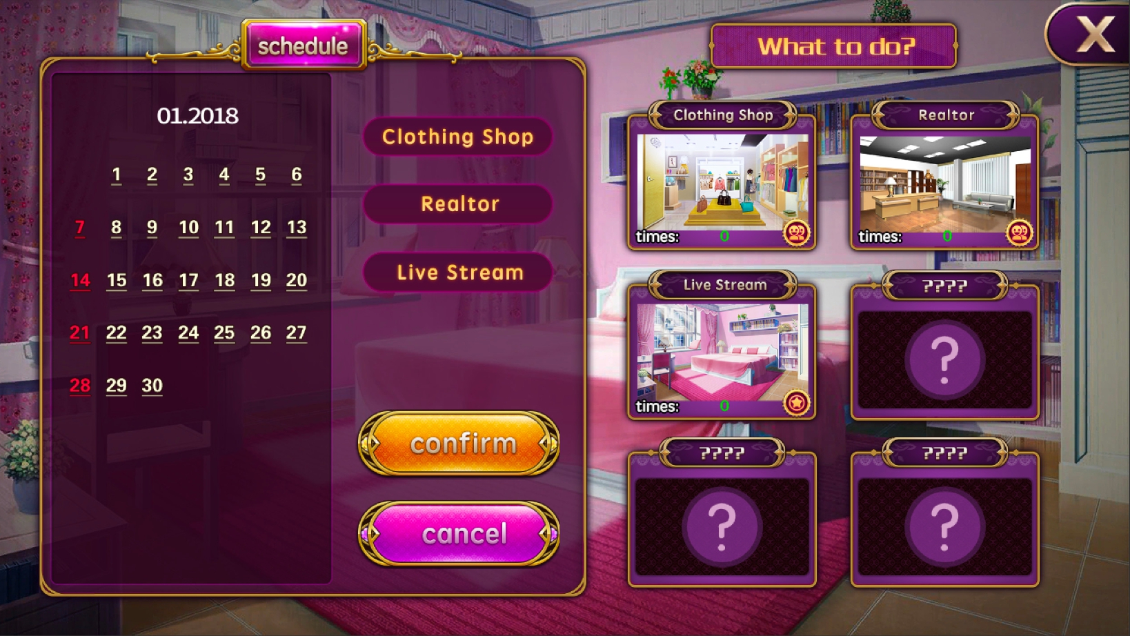 各位的工作就是幫(援)助女主角安排工作,例如:服飾店打工、酒店陪酒或是在房間開直播,在有限的時間內還清所有欠債。
