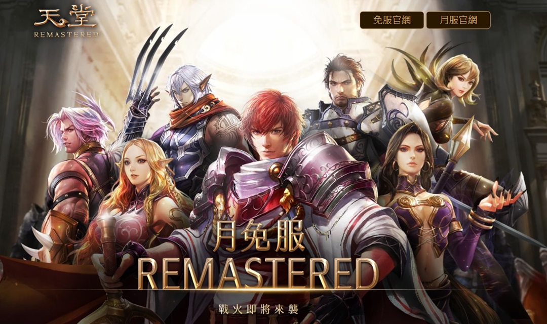 《天堂》開服20週年,特別推出重大改版計畫,「天堂」及「天堂免費伺服器」,即將全面升級REMASTERED版本,進化為《天堂月免R》!官方將於8月12日至8月24日開跑事前登錄活動,完成登錄可獲得台灣獨家最強BUFF道具「死亡騎士碑石」*1及「龍之鑽石(刻印)」*1500,於改版後14天內,登入遊戲可再加碼獲得「亞瑟王的聖杯組合包」。
