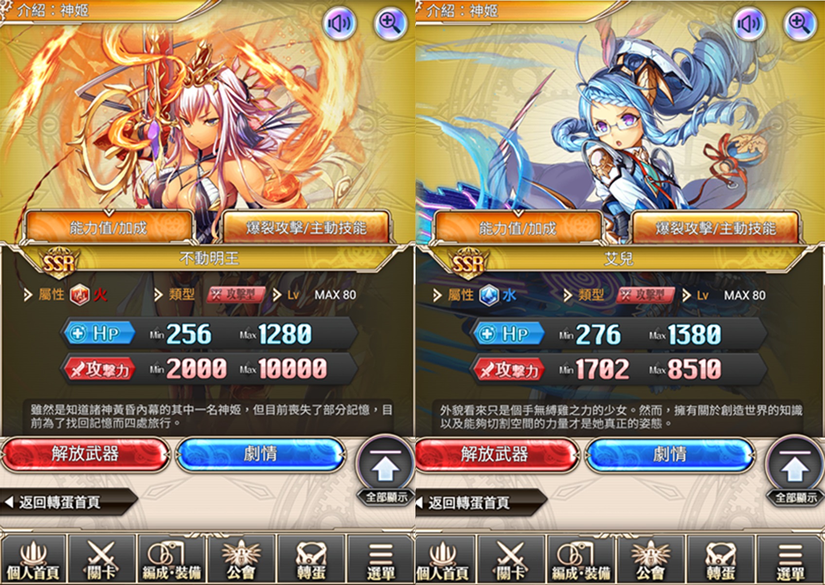 而屬性主要推薦的則是:「火屬性」及「水屬性」,像小編目前擁有的火屬神姬是「亞蒙」