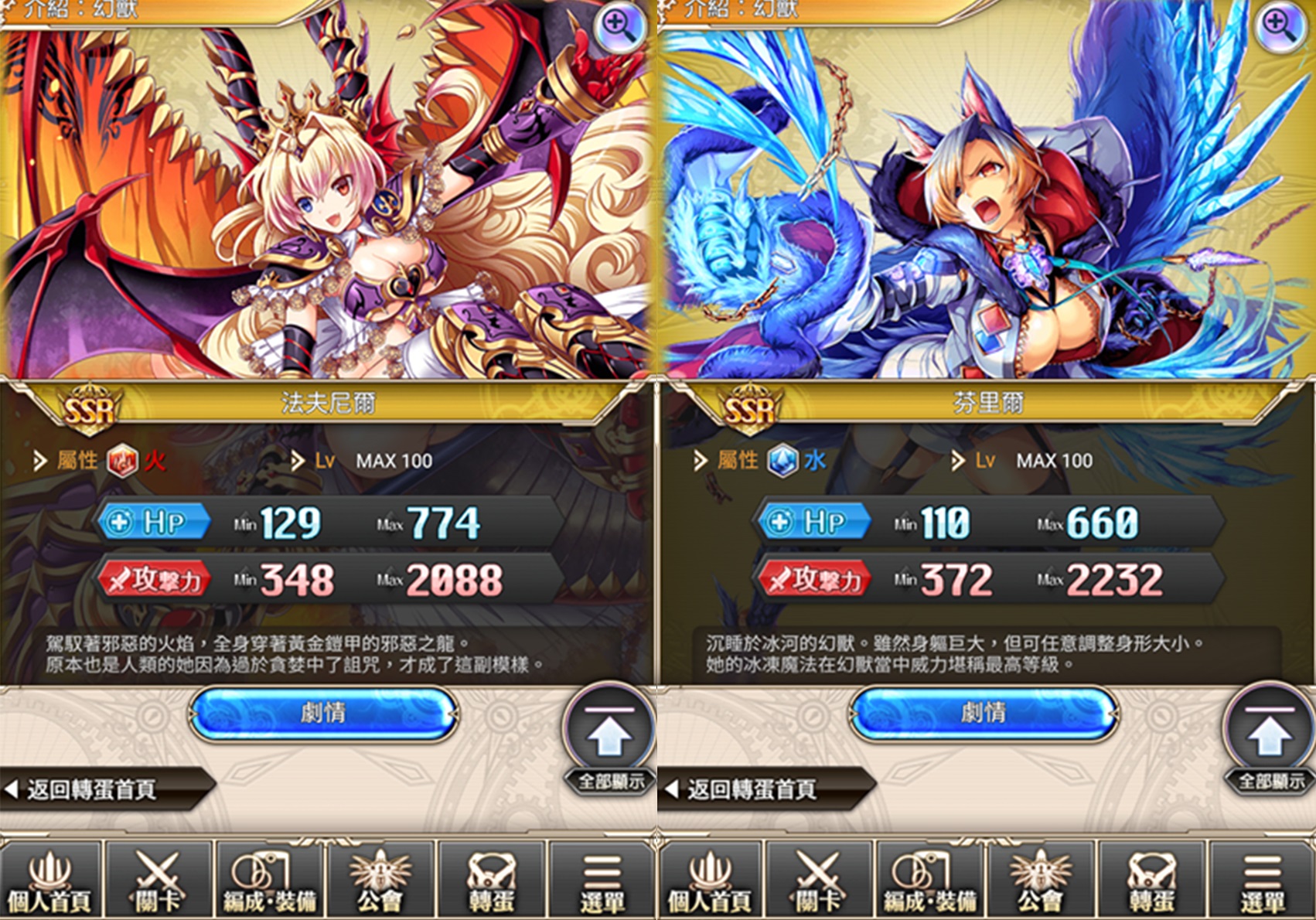 雖然進行遊戲中,幻獸使用率沒有這麼高,不過在推圖的時候,還是可以盡量使用相對的屬性進行攻擊,可以加快推圖速度,若是早期推圖,若是沒有剋制屬性的角色,也可以先用闇或光屬性來推圖,相信也可以輕輕鬆鬆推到第四章,大家可以嘗試體驗看看!