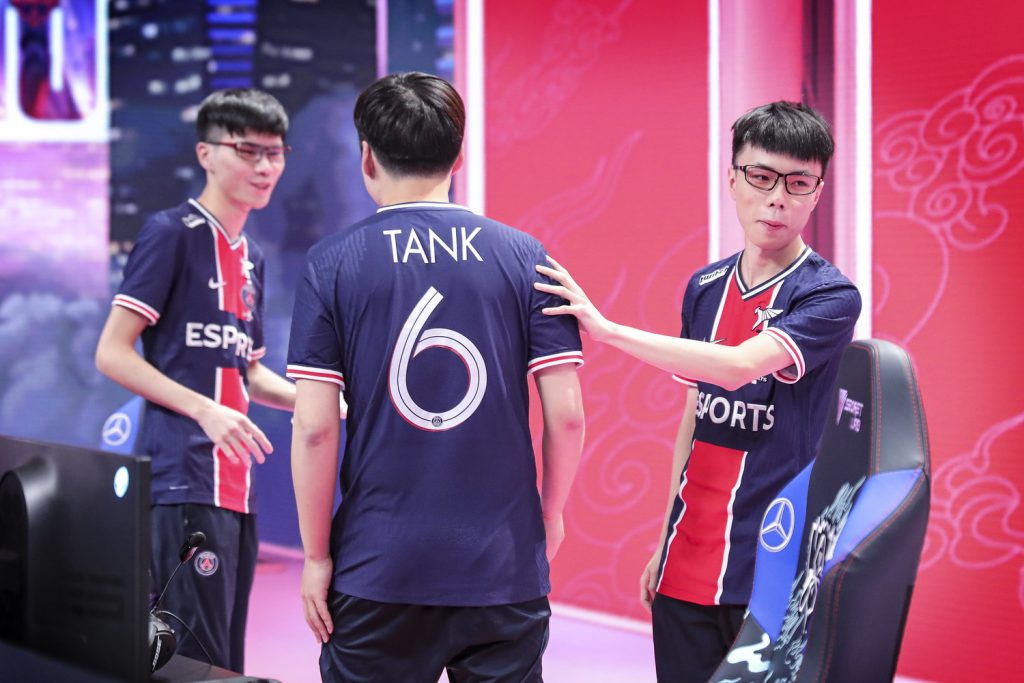 不過隊伍接下來面對JDG全隊反而覺醒,PSG中野撐起前期節奏,率先連搶三條小龍,並在水龍魂戰打出1換4團戰並拿下龍魂,反而最後從JDG手中拿下今年世界大賽小組賽第一勝。最終對上RGE,Unified拿出好久不見的亞菲利歐出戰,最終他也在團戰中有順利發揮,Tank在中路一波先大再推球的群暈操作也為PSG鎖定勝局。PSG連奪兩勝,最終以2勝4負排名反超RGE,以小組賽第三抬頭挺胸告別本屆世界賽賽場。