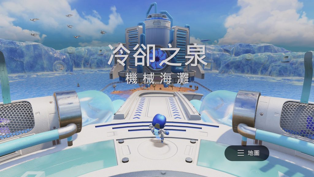本次我們獲准公開的關卡叫做「冷卻之泉」,是PS5內建遊戲「太空機器人遊戲間」的其中一關。在這個關卡中除了可以體驗到各種充滿創意和有趣的內容外,最大的特色就是這個關卡完美介紹了「DualSense」的大部分機能。