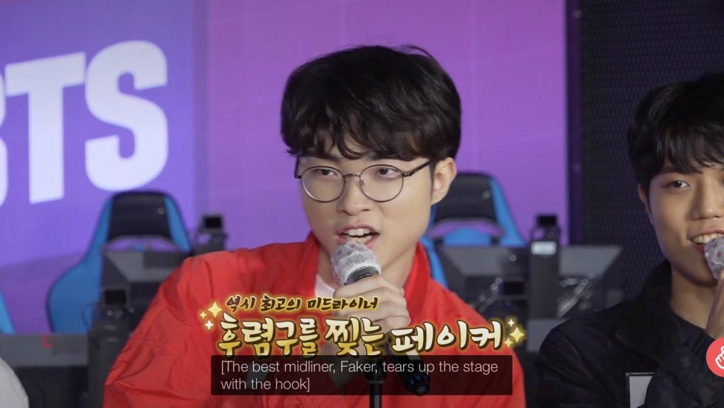 BTS 團體綜藝節目《奔跑吧!防彈》(Run BTS!)每一集中 BTS 都要面對不同的任務或活動並完成挑戰,而在許多小挑戰中如果有成員表現得比較好,其他成員常常會戲稱他是這個項目的 Faker,可見中路魔王的國民認知度有多高,而 T1 隊上的輔助選手 Effort 也是 BTS 的小迷弟,不僅擁有 BTS 的應援手燈「ARMY BOMB」,遊戲帳號「Spread Wing」更是來自 BTS 的歌曲〈Outro: Wings〉,他還自爆最喜歡其中成員 V 。而 Effort 為了這次活動,還特地將自己的頭髮染成了〈Boy With Luv〉時期 V 的髮色,同款午夜藍讓他成為整場比賽中最搶眼的存在。