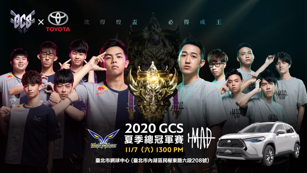 而MAD Team(MAD)於季後賽中守住勝利,以第二名的姿態前進總冠軍賽,MAD將挑戰GCS史上拿下第二座冠軍獎盃的隊伍。總決賽制七戰四勝,獲勝隊伍將可得到GCS夏季聯賽總冠軍、200萬獎金以及TOYOTA王者之戒。