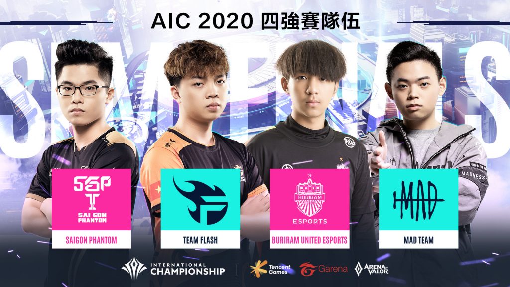 AIC 2020國際賽八強賽在經過了五天激戰後,最終四強名單於12月6日出爐,由GCS賽區的MAD Team(MAD)、RPL賽區的Buriram United Esports(BRU)、AOG賽區的Team Flash(FL)以及Saigon Phantom (SGP)贏得四強賽門票;四支頂尖強隊將在12月12日至12月13日進行四強對戰,獲勝隊伍將可獲得AIC總決賽門票,於冠亞軍爭霸賽上一較高下。