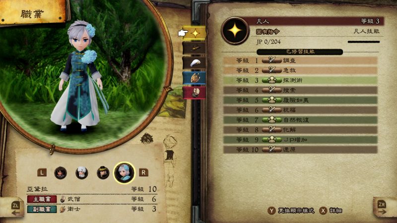 有些玩過舊時代FF的玩家或許很熟悉這套了。在本作中,透過擊敗BOSS獲得特殊道具「晨星」,你可以逐漸解開十多種不同的職業。每名角色可以裝備「主職業」和「副職業」兩種,每種職業都有各自的等級和經驗值,隨著你裝備這些職業戰鬥,職業等級(JLV)會逐漸提升,並解鎖各式各樣的專屬技能。而本作最大的養成要素,就是看玩家如何組合職業搭配,好養出最強的隊伍。