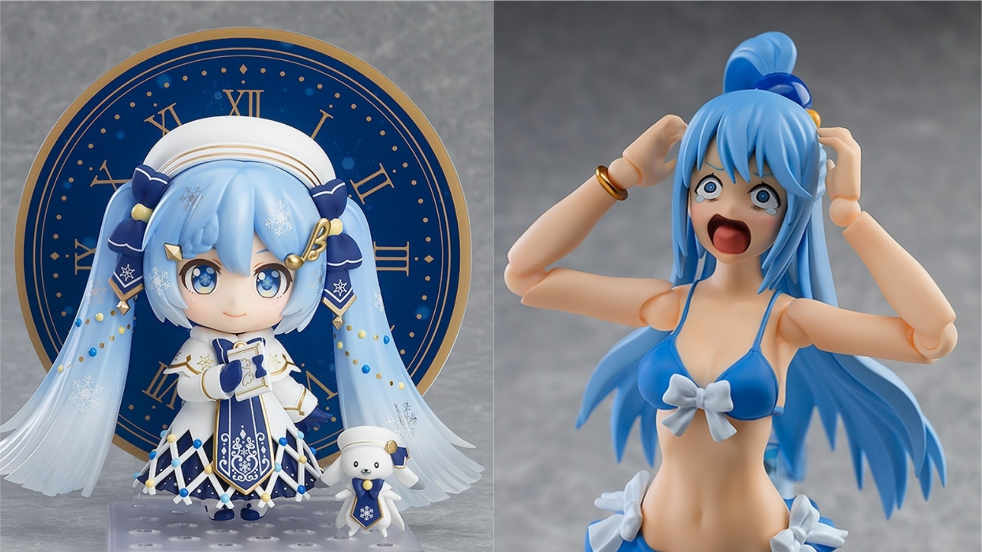 出自動畫《為美好的世界獻上祝福!》,美麗的沒用女神「阿克婭」大人以可愛的冬天造型化為黏土人。替換用表情零件有好勝的「普通臉」、微笑的「笑臉」與可愛的「啜泣臉」。溫暖的「帽子」可自由脫戴。
