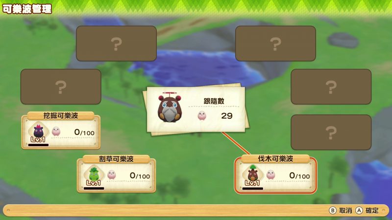 另外,在以往只有中後期才有辦法使用的「小矮人」這次則被新的神祕生物「可樂波」所取代。這些有趣的小生物會在你進行挖掘和採集動作時越變越多,而當你聚集到一定數量時,就能帶它們到可樂波之森分配工作,且可以藉由他們的工作來取得對應的資源。這個系統一樣被修改為相當早期就能夠使用,如果是沒有耐心的玩家,多依賴它們就準沒錯啦!