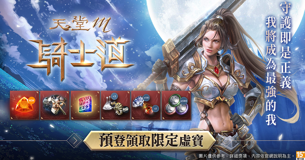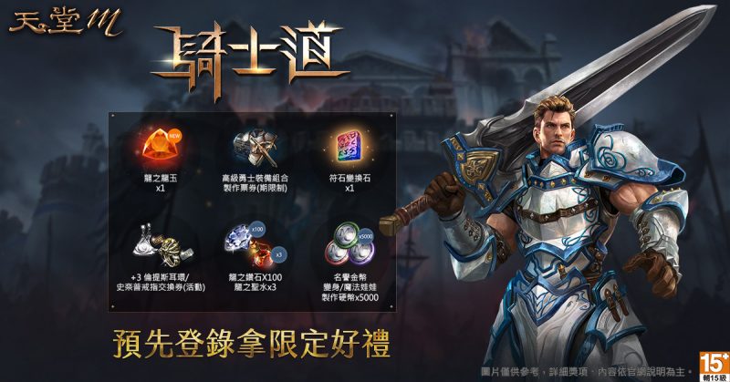 《天堂M》重生的戰鬥先鋒.騎士道職業改版、3月3日展開預先登錄活動!《天堂M》將於3月3日14:00開放四大經典職業【重生的戰鬥先鋒.騎士道職業改版】預先登錄,完成登錄可取得「符石變換石」、「龍之龍玉(10天)」、「+3倫提斯耳環/史奈普戒指交換券(活動)」等虛寶獎勵。