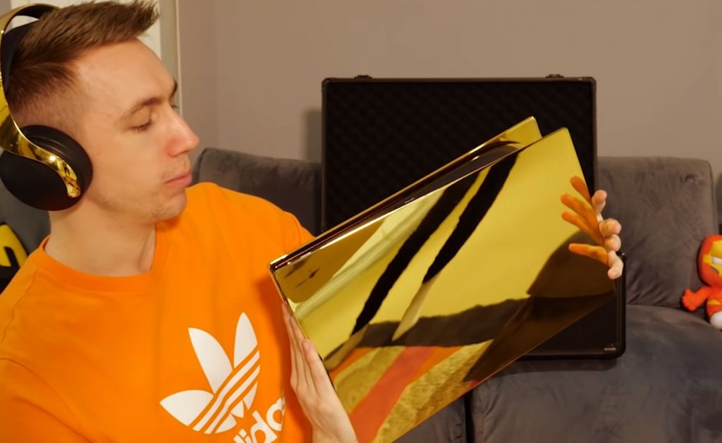 去年PS5正式於全球發售前,英國一家奢華品牌 Truly Exquisite 就開放讓玩家預約以 24K 金打造的黃金PS5,售價為 8299 歐元(約新台幣28萬元),不僅主機外格權是24K金,連手把、耳機等也是金閃閃。最近終於有 Youtuber 正式開箱,讓粉絲可以一睹這台 24K 金 PS5 的廬山真面目。