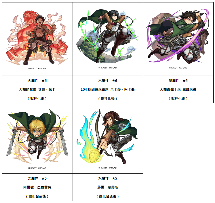 《怪物彈珠》x《進擊的巨人》部份合作登場角色