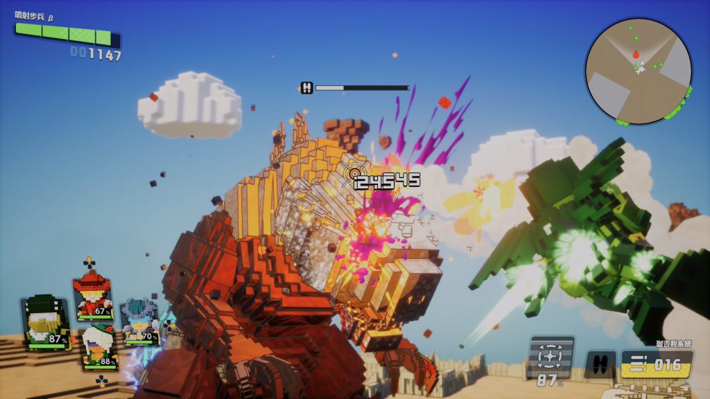 雖然說地球四分五裂,但物理意義上的四分五裂倒是挺少看到的 除了敵人和場景都變成了可愛的方塊造型外,遊戲的基礎玩法與原本的地球防衛軍沒有太大的不同,玩家必須在這個可愛的方塊世界中四處奔波,操作四名EDF小隊成員,想辦法達成擊破外星侵略者的任務。